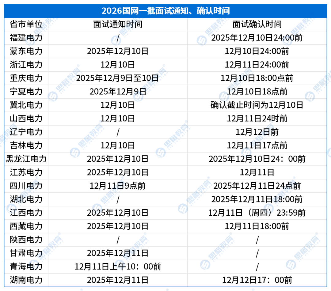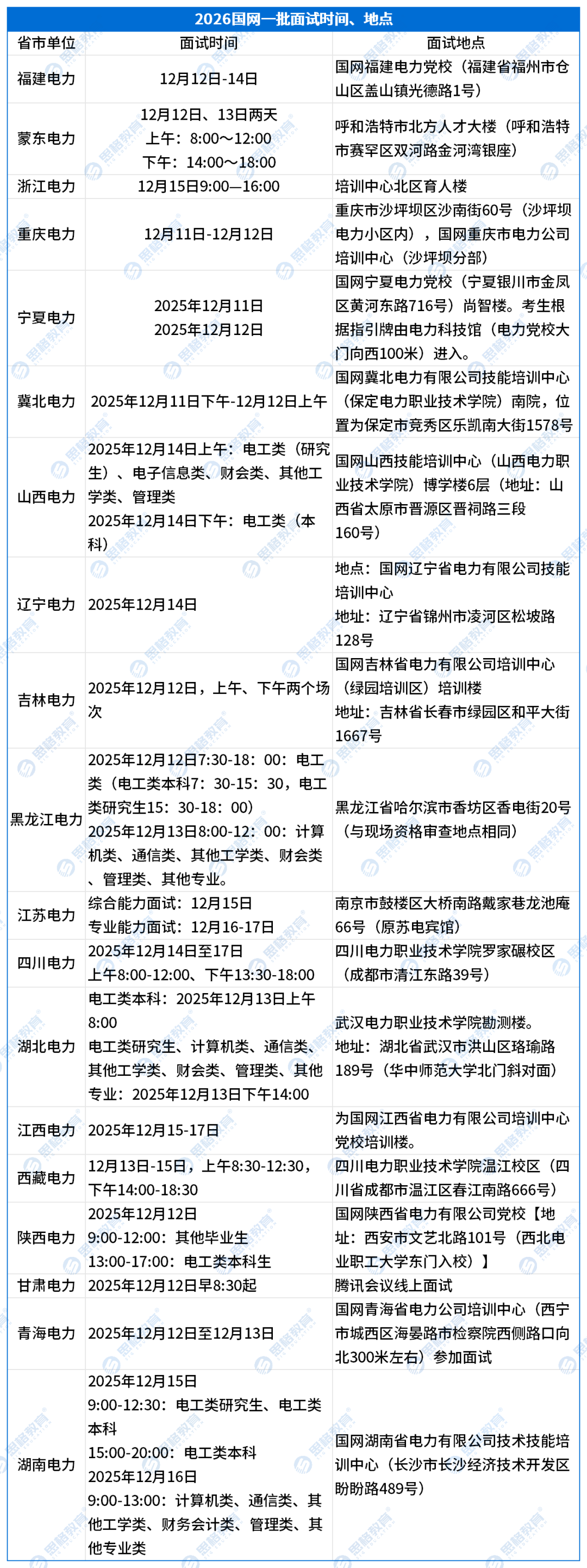 2026國家電網(wǎng)一批面試公告陸續發(fā)布,小思整理了相關(guān)信息,方便同學(xué)們查閱~